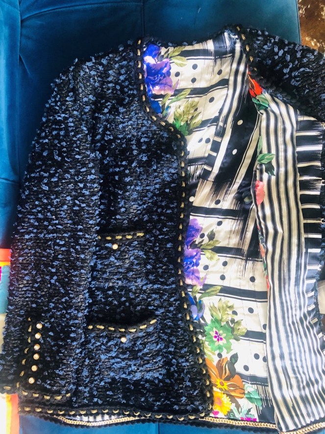 Repurposing a silk scarf is what Margo did for her very first couture jacket.