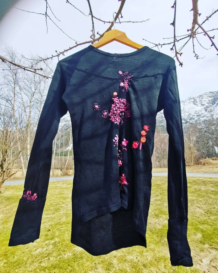 There is a jeans jacket I bought second-hand. I made a crochet panel in the sides as it was a bit too small for me but I loved this jacket so much. I planned to add some embroidery on the back of this jeans jacket, but haven’t gotten around to do it as yet.