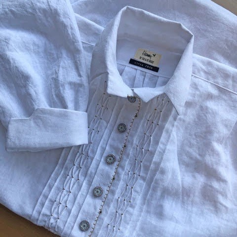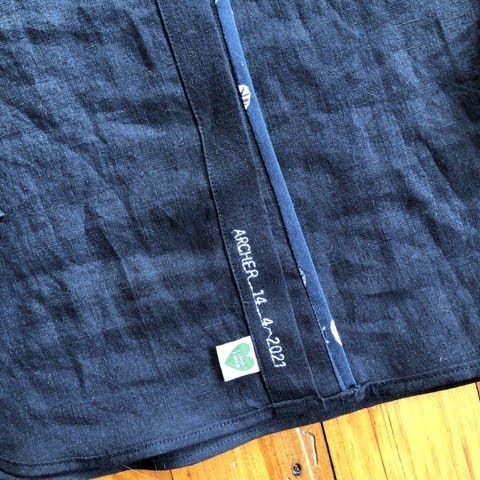 She suggests you plan ahead to add time stamps so they are hidden on the inside: back yoke of shirt, inner pocket, coat facing, button placket, even on a French seam. Use a different colour thread so it is visible.