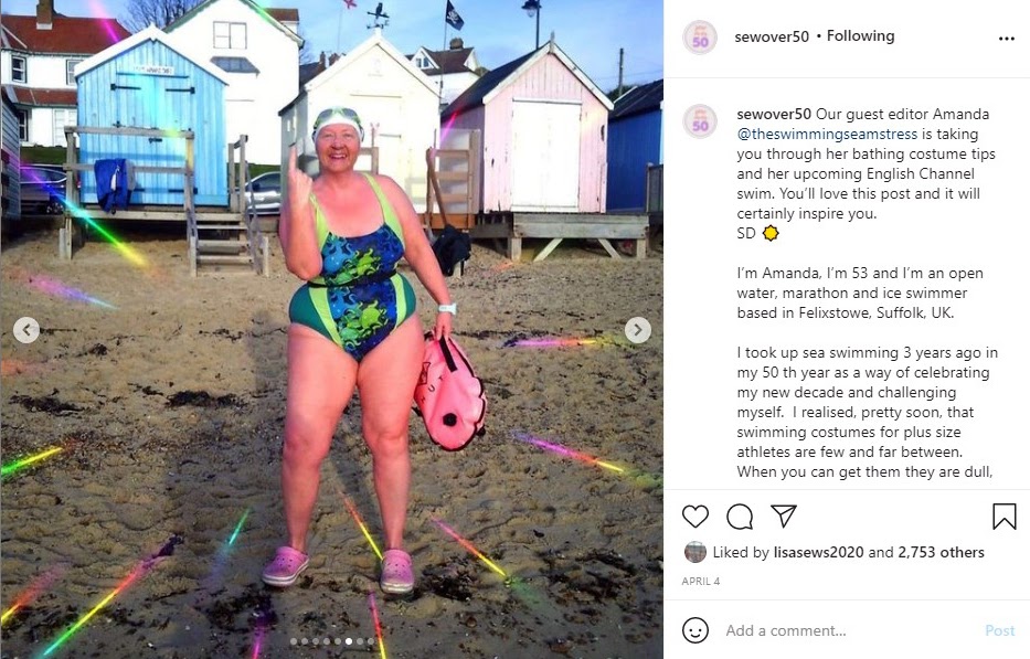 She sews her own swimwear and has perfected her marathon cozzies. She’s known as ‘The Swimming Seamstress’ on Instagram and Facebook page called Sewing for Swimming and she tells us her marathon swimming story and her cozzie sewing knowledge. Amanda shared her sewing and swimming story as a guest writer for Sewover50 on Instagram. Make sure you find Amanda on Instagram .