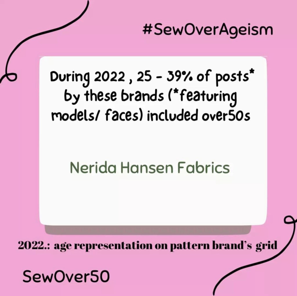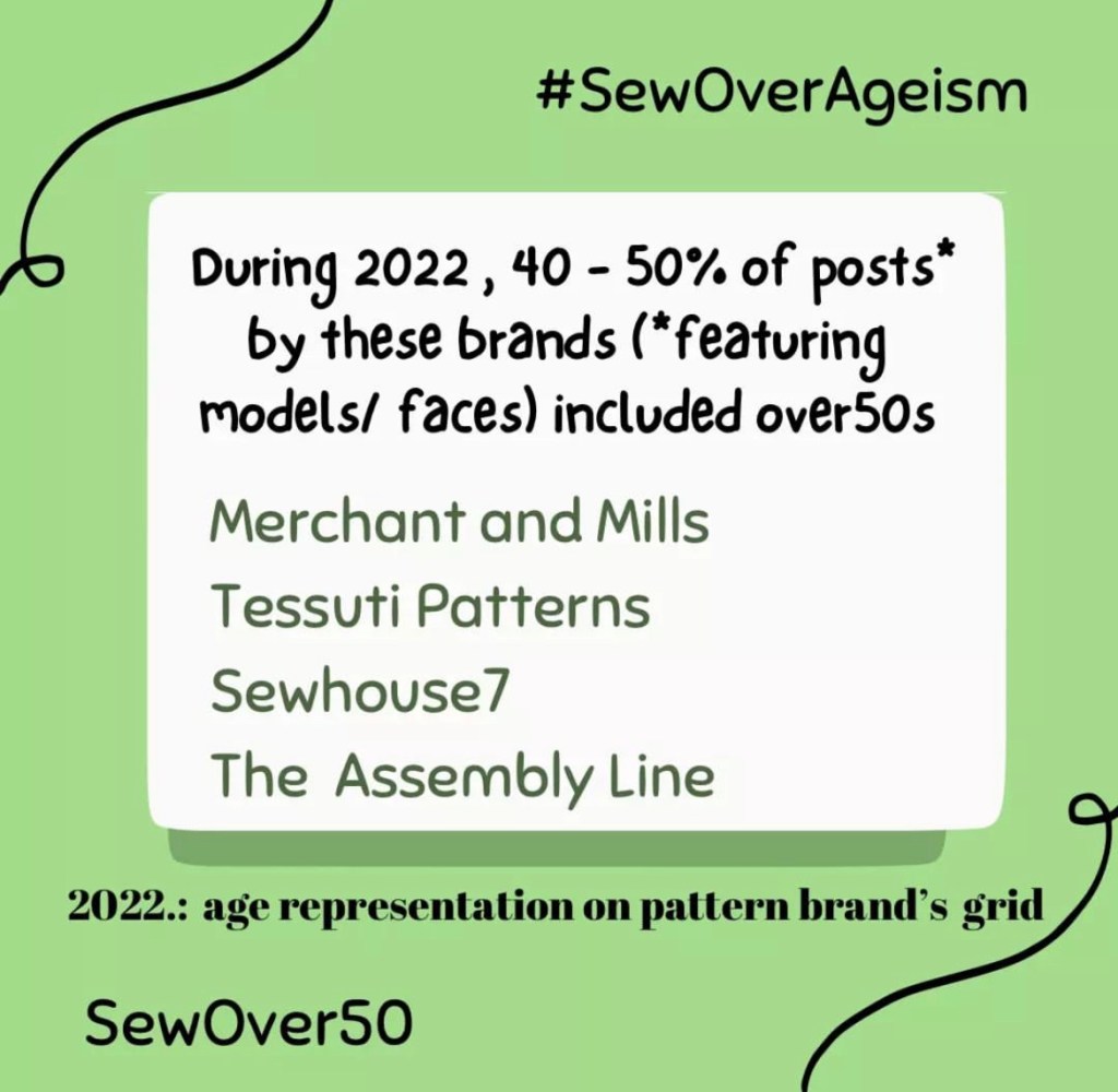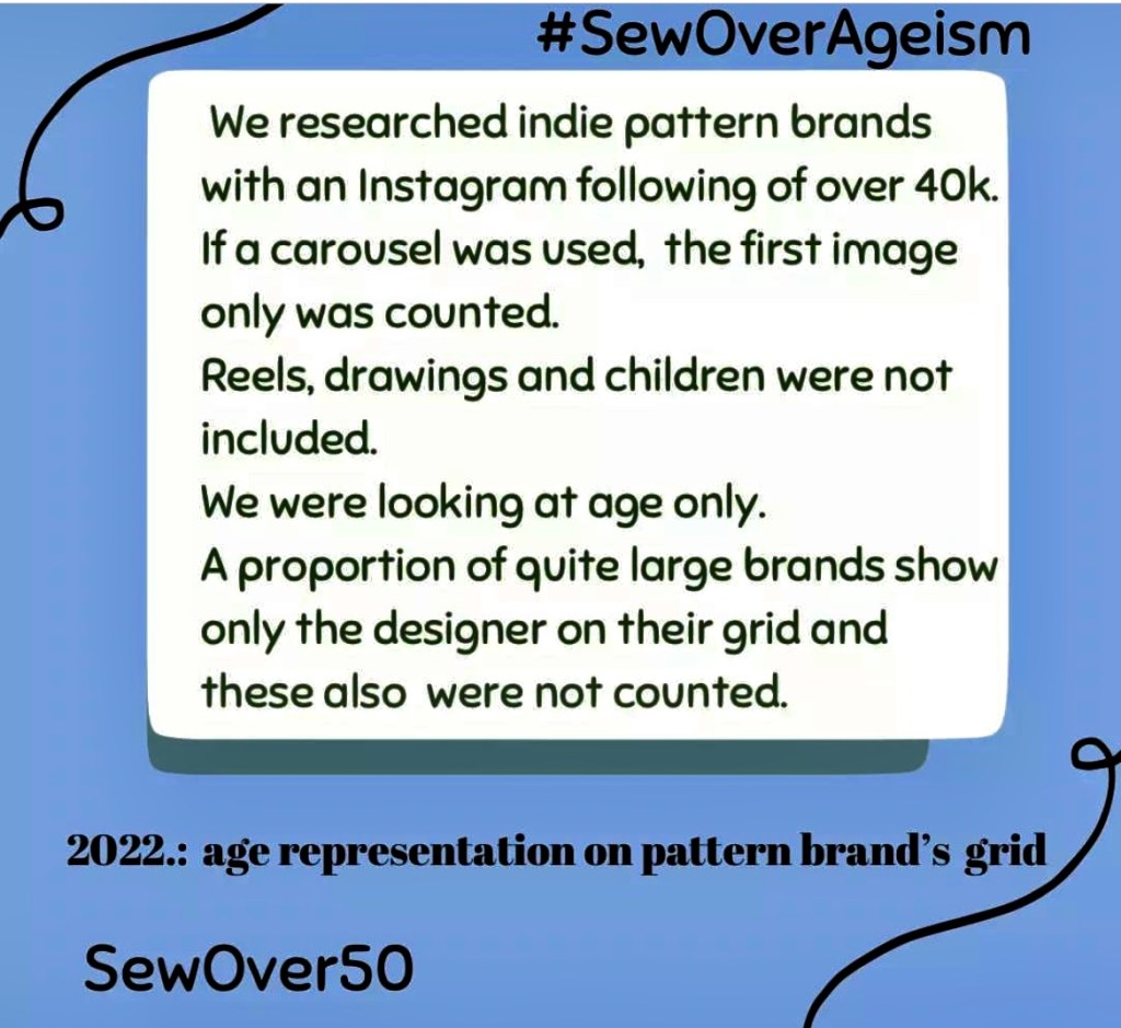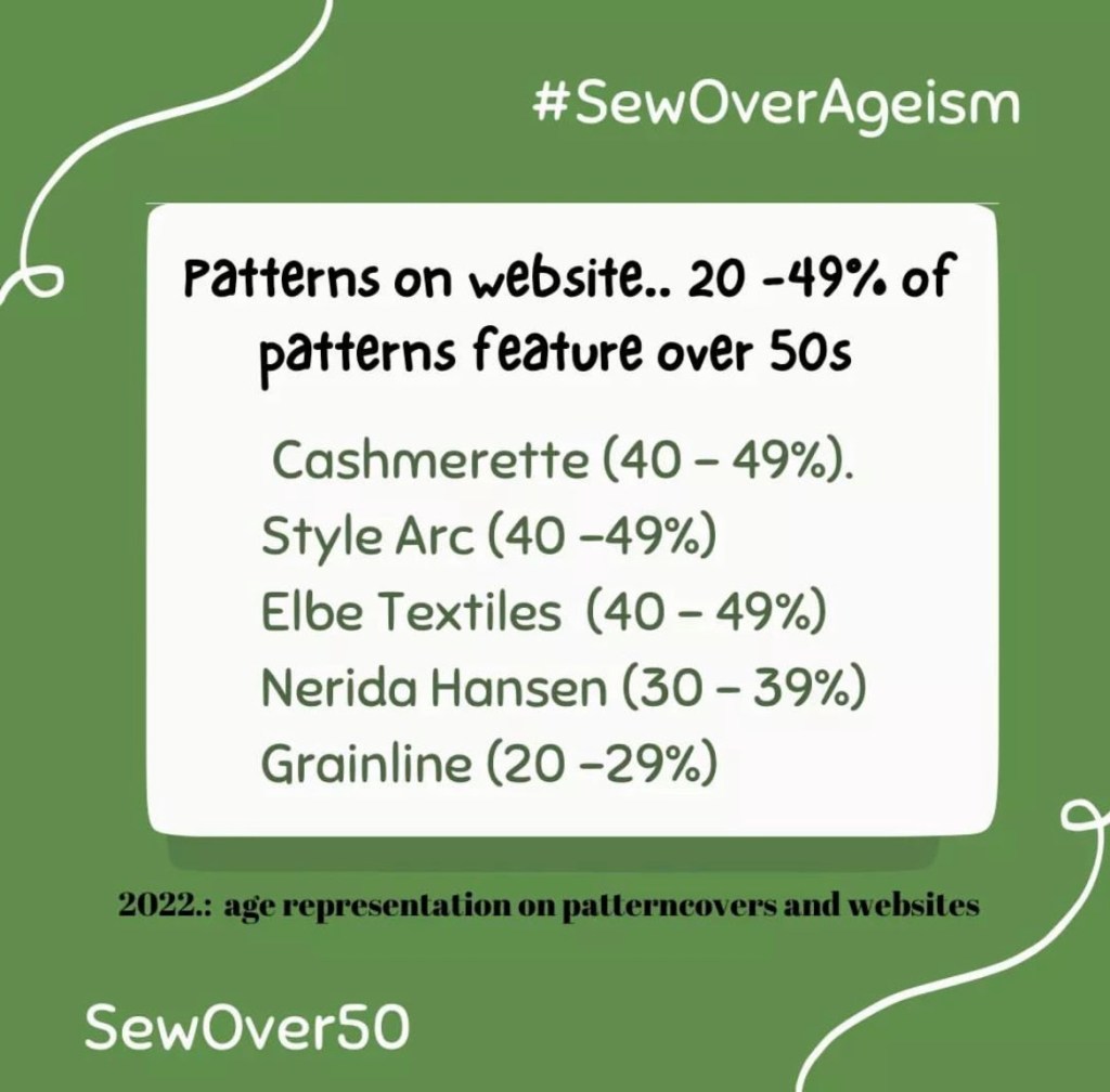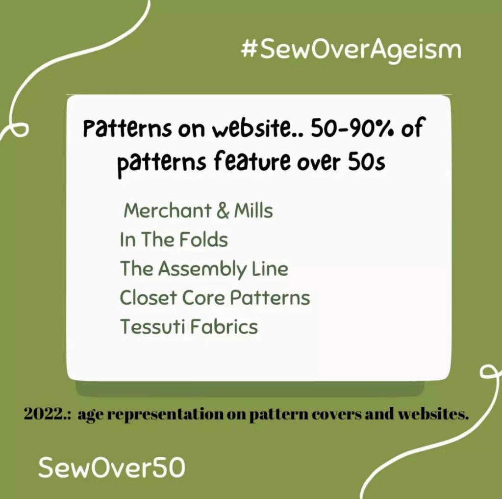 Saturday 29 April 2023: Judith Staley with a team of 4 SewOver50 followers conducted research of pattern companies from 1 January to 31 December 2022 to identify the visibility of older sewists. This research helps to show if the SewOver50 account and the community has made a difference since 2018.