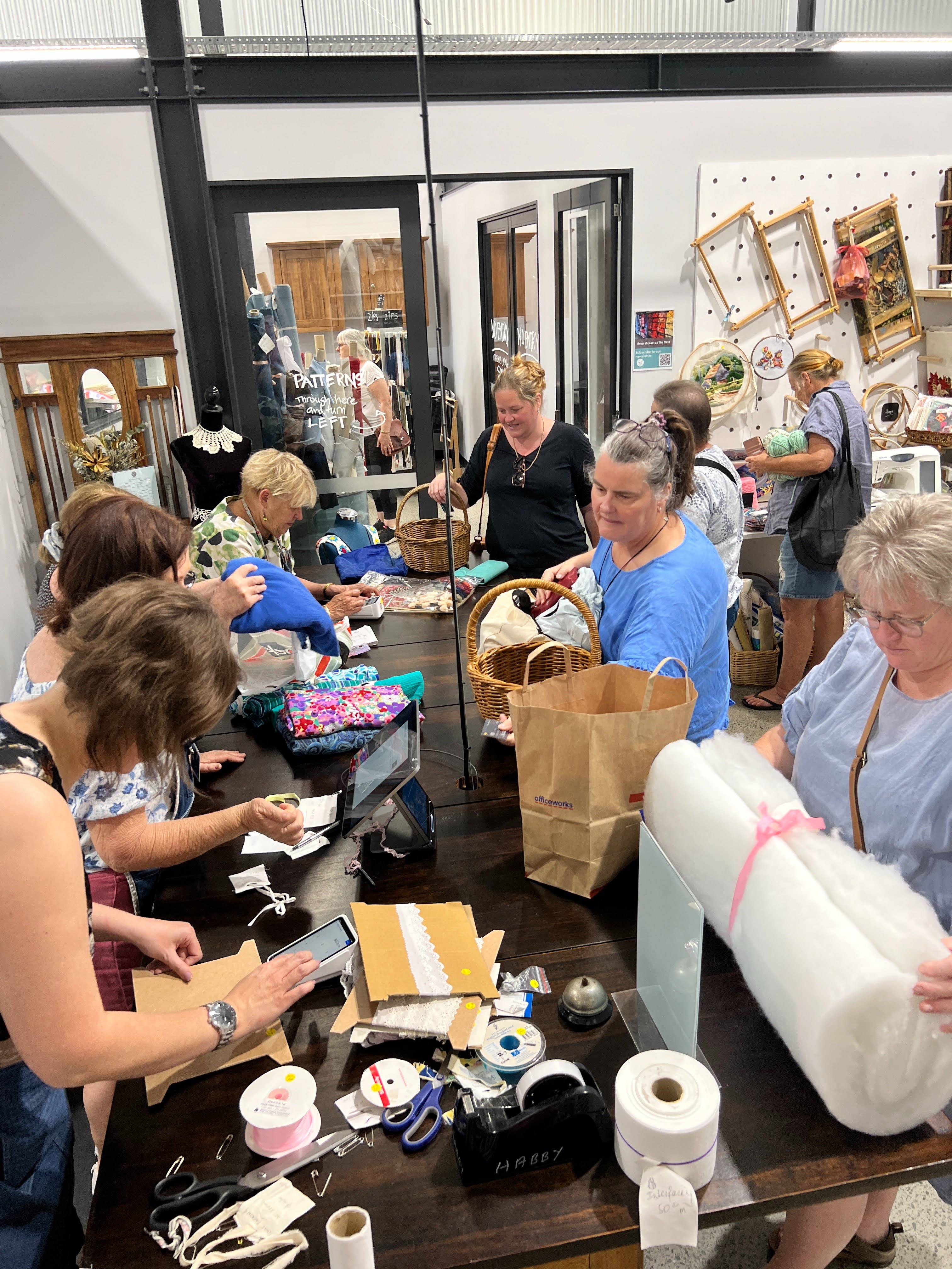 Reselling fabric and notions through their 130 volunteers at the shop provides lots to see and buy by over 500 visitors per week. Unlike many thrift stores, The Nest Community manages to sell over 65% of their donations, in their bid to reduce landfill.